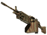 A strong open-area LMG, the M249 is the perfect choice for players willing to trade a slow fire rate for increased accuracy and a high ammo capacity. It has been spray-painted in a zebra stripe pattern.
