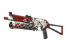 The Bizon SMG is low-damage, but offers a uniquely designed high-capacity drum magazine that reloads quickly. It has been custom painted with poker chips, dice, and a royal flush over a red base. All in
