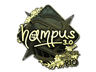 This item commemorates the IEM Rio 2022 CS:GO Championship. This sticker can be applied to any weapon you own and can be scraped to look more worn. You can scrape the same sticker multiple times, making it a bit more worn each time, until it is removed from the weapon. This gold sticker was autographed by professional player Hampus Poser playing for Ninjas in Pyjamas at the IEM Rio 2022 CS:GO Major Championship.