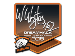 This item commemorates the 2015 DreamHack Cluj-Napoca CS:GO Championship. This sticker can be applied to any weapon you own and can be scraped to look more worn. You can scrape the same sticker multiple times, making it a bit more worn each time, until it is removed from the weapon. This sticker was autographed by professional player Wiktor Wojtas playing for Virtus.Pro at DreamHack Cluj-Napoca 2015. 50% of the proceeds from the sale of this sticker support the included players and organizations.